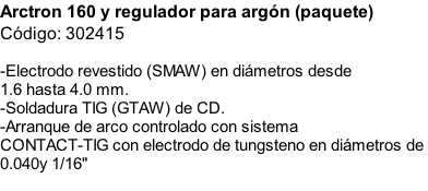TH 235/160 Código: 303137  -Ajuste continuo de corriente, permite ajustar la salida de corriente de manera precisa a la necesidad de la soldadura. -Fácil arranque del arco. -Paquete de rodajas y manubrio. -Dos rangos de corriente, alto y bajo. Precio: $9,765.00 M.N.